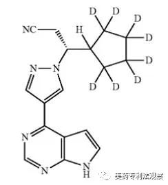 Incyte提出的IPR无效审查主要针对权利要求7包括的三个化合物,其中的十氘代化合物为CTP-543: