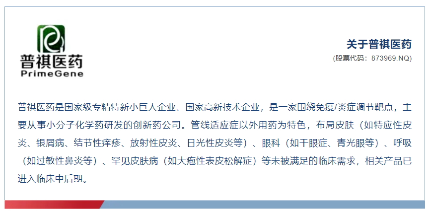 普祺医药致力于免疫和炎症性疾病创新外用特色药的研发,依托经验丰富的研发团队,构建了一套完整的新药研发体系,涵盖了从前端研究到后端临床开发的各个阶段。目前,普祺医药相关产品已进入临床中后期。